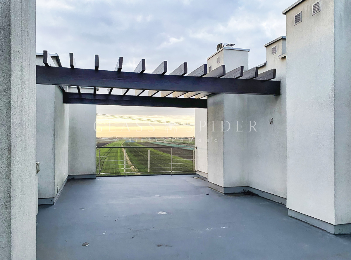 * Taras rekreacyjny z zadaszeniem i pięknym widokiem na zachód słońca o powierzchni aż 65 mkw