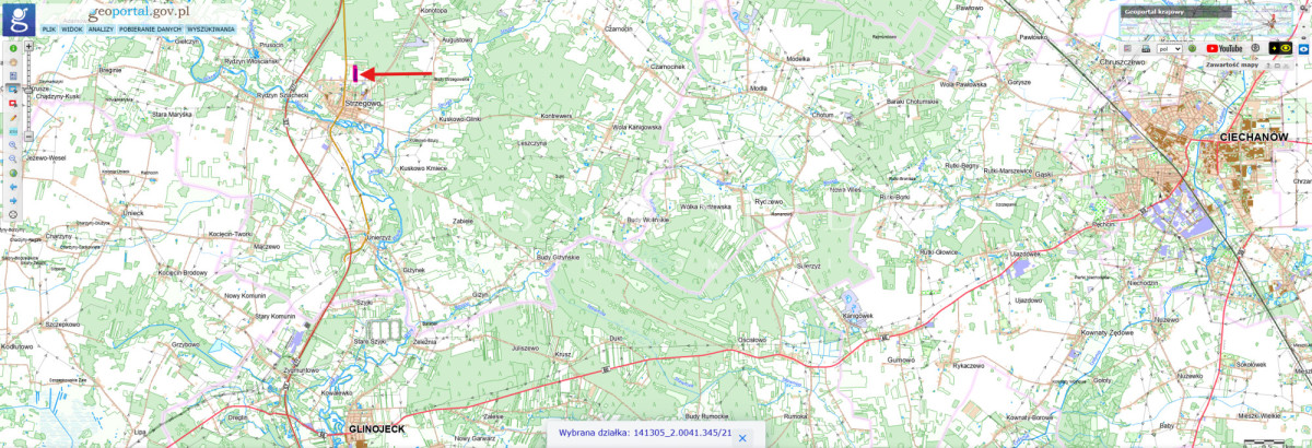 Działka budowlana o powierzchni 8 314 mkw., która zgodnie z opracowywanym Planem Ogólnym gminy Strzegowo