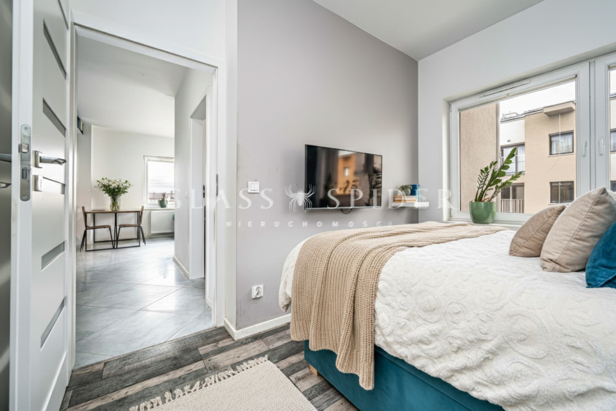 Mieszkanie mieści się na kameralnym osiedlu z 2018 roku z niską zabudową, wśród zieleni, z placem zabaw dla dzieci oraz wewnętrznym parkingiem dla mieszkańców. Mieszkańcy do swojej dyspozycji mają także siłownię plenerową na terenie osiedla.