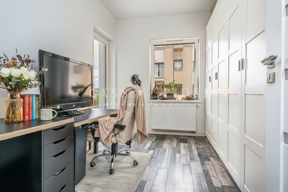 ⚡Gabinet lub pokój dziecięcy - z dodatkowym wyjściem na balkon, daje wiele możliwości aranżacyjnych, na podłodze panele, duża szafa pomieści szereg domowych szpargałów.