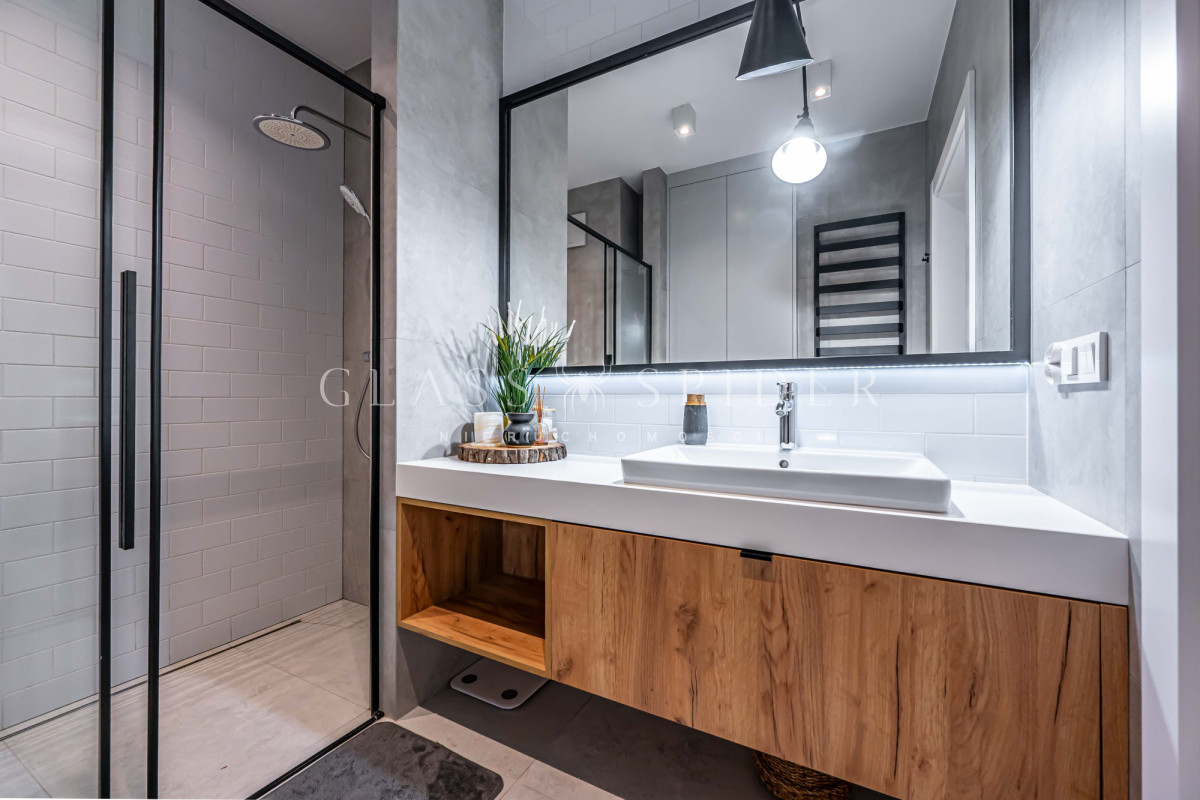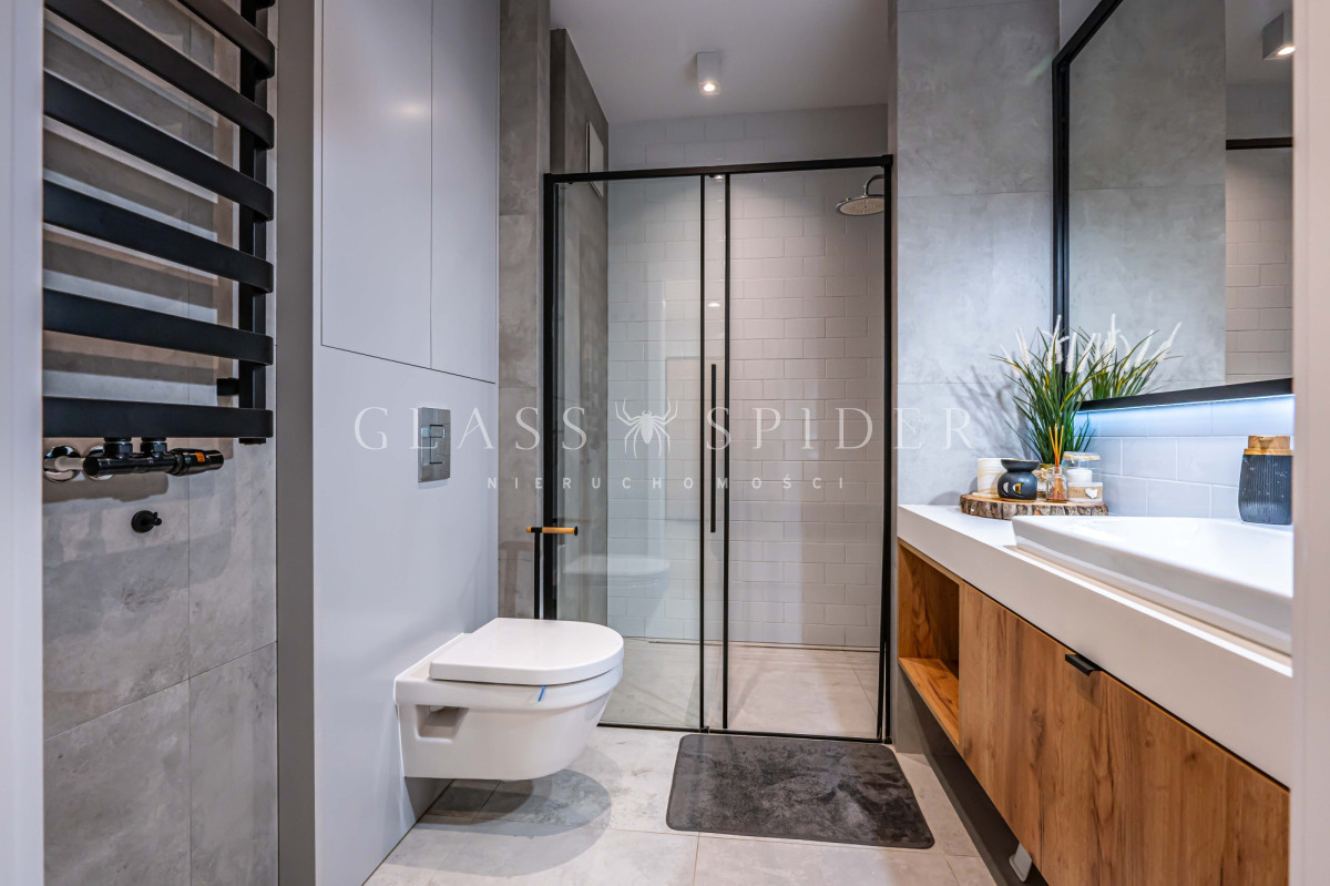 wyjątkowy układ pomieszczeń, dużą i wygodną garderobę oraz liczne, dyskretnie wkomponowane miejsca do przechowywania. Każdy detal został przemyślany - od doboru materiałów po spójność aranżacji.