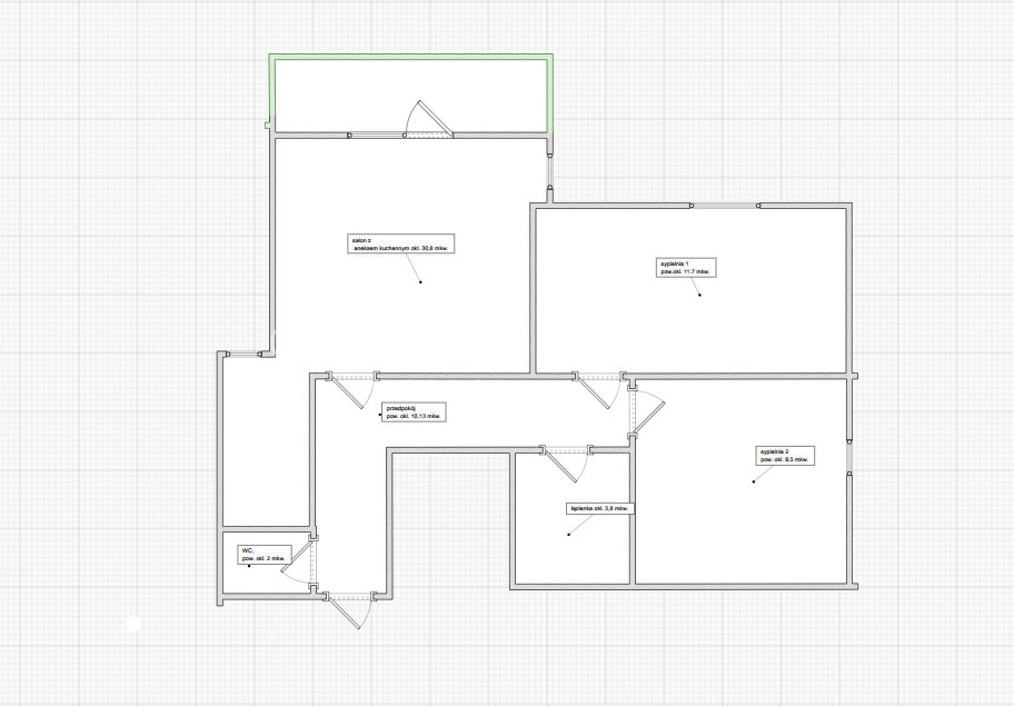 Powierzchnię mieszkania (67,93 mkw.) stanowią:• salon z aneksem kuchennym oraz wyjściem na balkon - 30,8 mkw.,