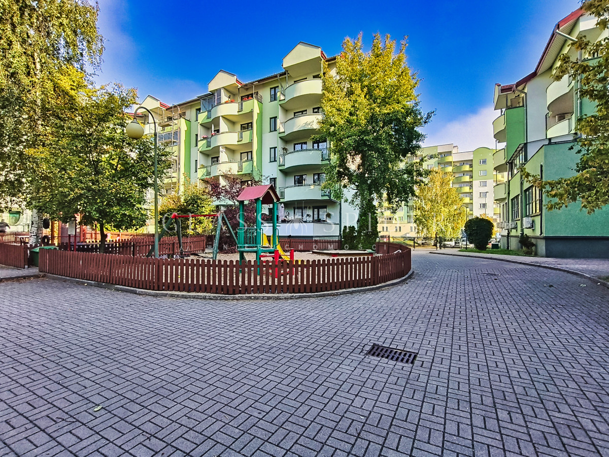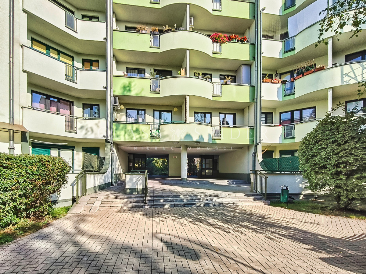 zamkniętego osiedla. Budynek 4-piętrowy, wielorodzinny. Zadbane, szerokie klatki schodowe zabezpieczone domofonem. Na najniższej kondygnacji usytuowane są miejsca parkingowe. Na osiedlu znajduje się
