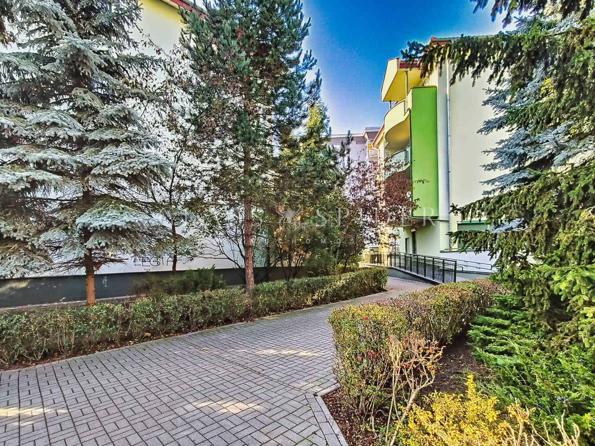 ochrona, bezpieczny plac zabaw dla dzieci, ławeczki wśród zieleni. Panuje cisza i spokój.