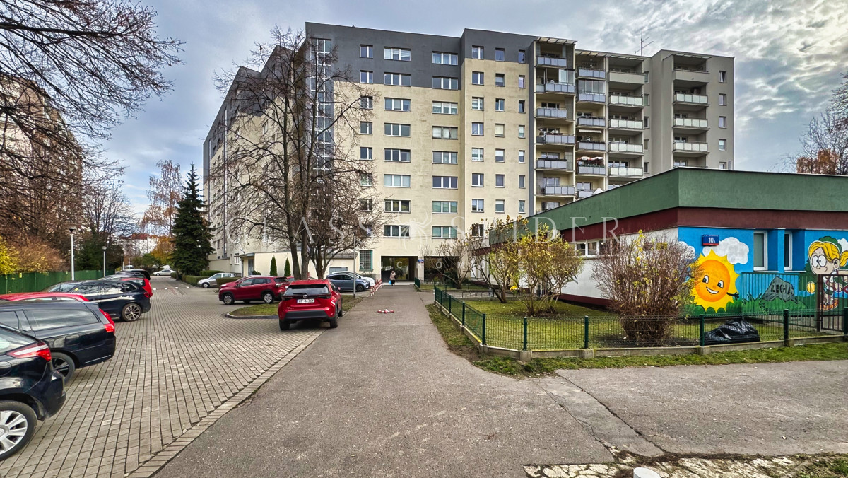 Przed budynkiem znajduje się ogrodzony teren przynależny wyłącznie do mieszkańców bloku, z możliwością parkowania.