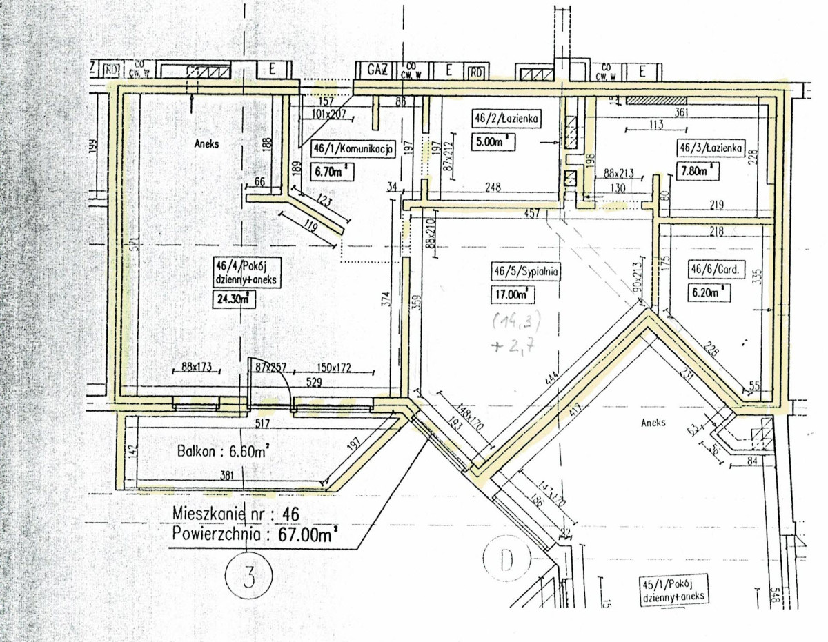 67 m², położone na 3. piętrze nowoczesnego, siedmiopiętrowego budynku z 2005 roku. Mieszkanie wykończone materiałami wysokiej jakości, w pełni wyposażone i gotowe do