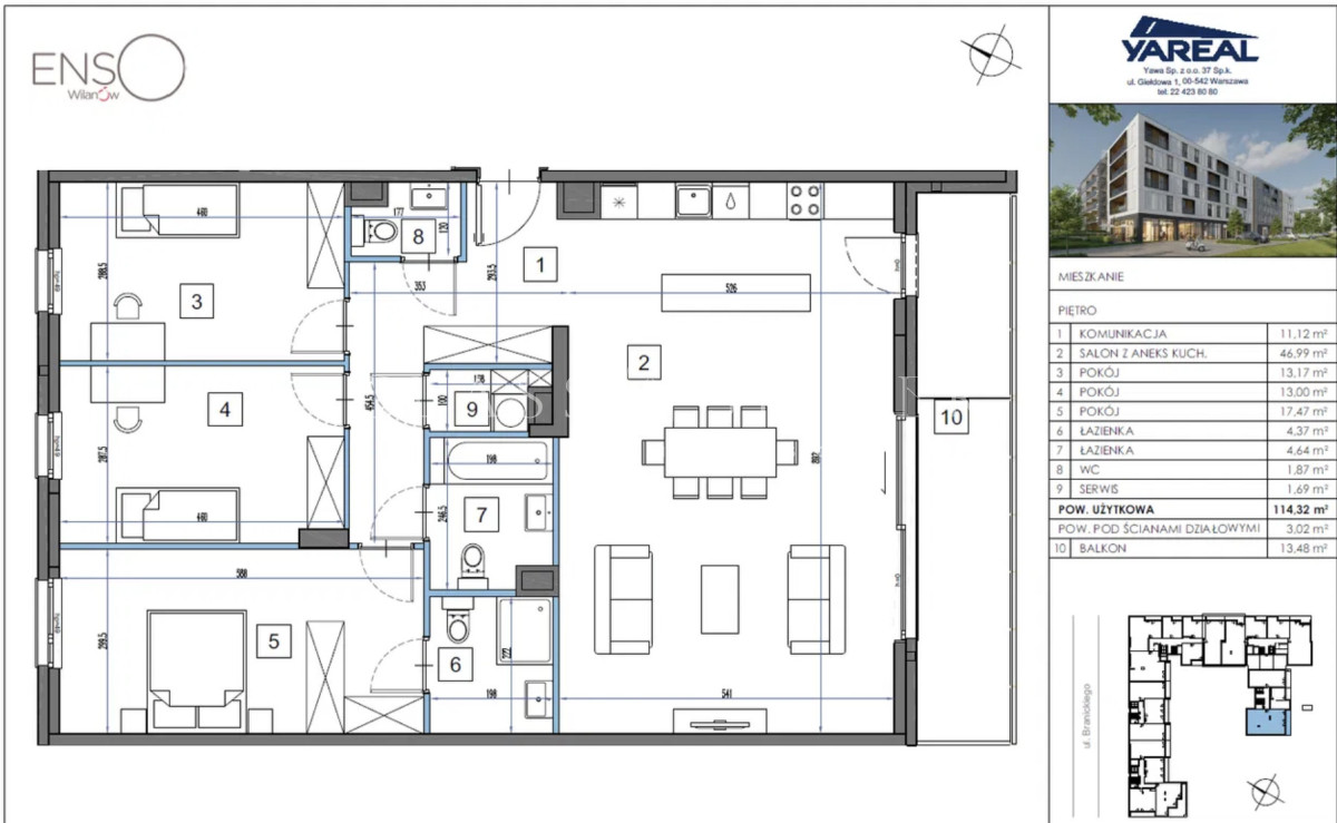 Rozkład pomieszczeń:• Przestronny salon - ok. 47 mkw.,