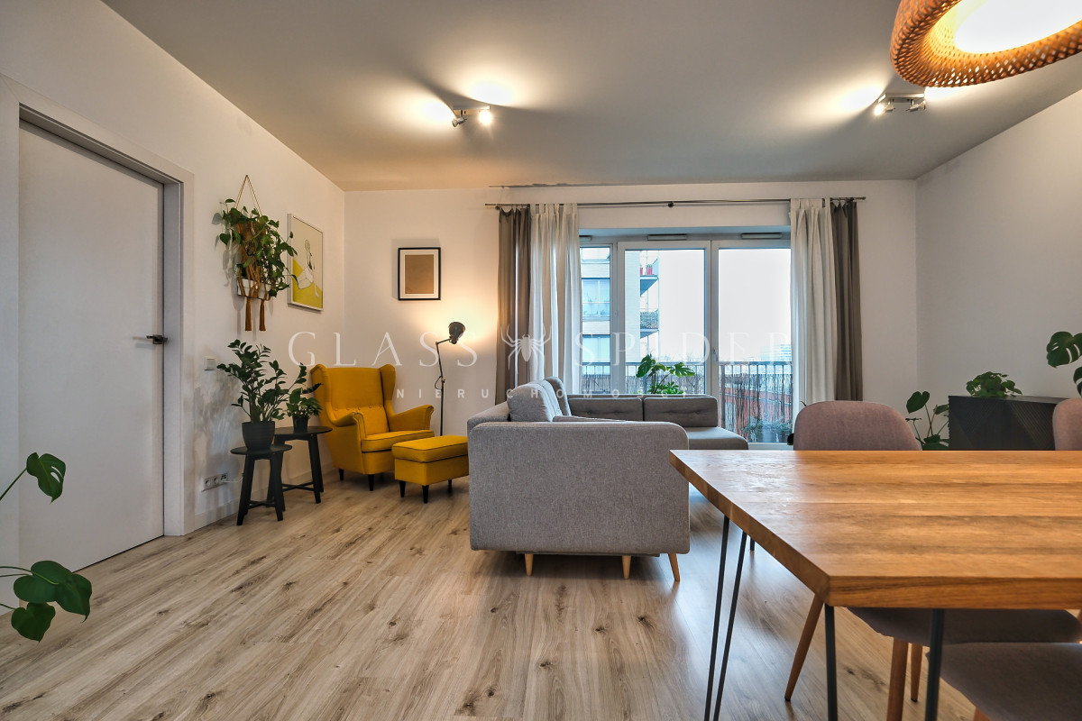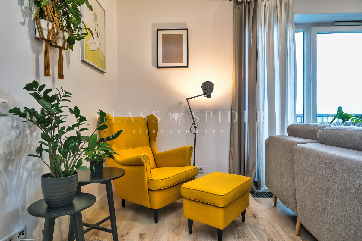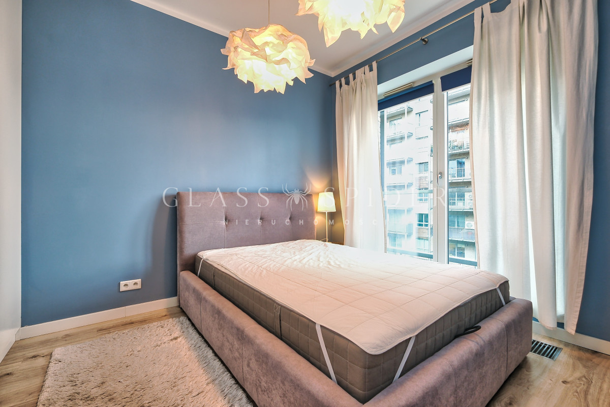 Przestronne, widne, dwupokojowe mieszkanie przy ul. Woronicza 31.Część dzienna to aneks kuchenny wyposażony w niezbędne sprzęty AGD, stół, narożnik, komoda oraz fotel z podnóżkiem. Z pokoju wyjście na