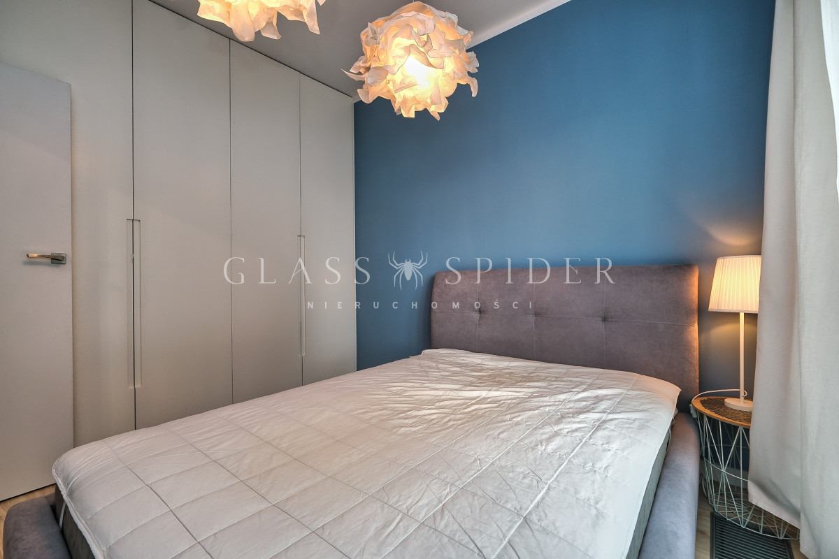 sypialni do dyspozycji szerokie łóżko oraz obszerna szafa w zabudowie.